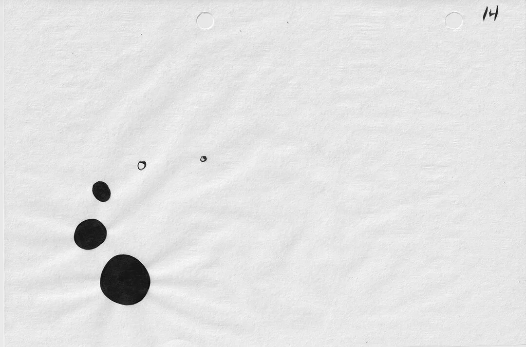The stills are sumi ink painted on tracing paper, measure 6” x 9” and have two registration holes near the top.